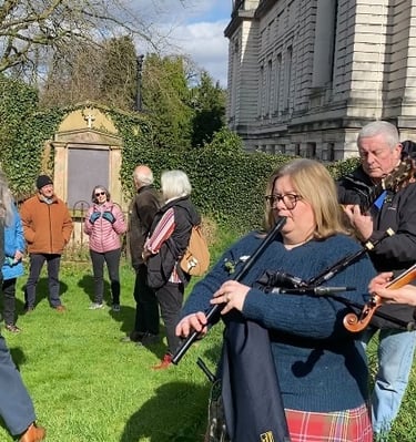 Our Social Purpose and our Flagship Project :The proceeds of Cairde na Cille's official Friar's Bush Tours go towards restoration of Friar's Bush Graveyard. Bookable directly on this site and with Visit Belfast, there are tours every Sunday at 12:00 year round and on occasional weekdays (Tuesday or Wednesdays) that we hope to increase to daily when we acquire a lease on the Gatehouse at Friar's Bush. Our tours are authentic, no-holes barred balanced expeditions into our ancient and Victorian-era past. The fascinating story of Friar's Bush on our Whistlestop Tour will transport you back 2 millennia! We also have monthly Graves and Gardens Tours that include a tour of the neighbouring Botanic Gardens, once part of the same larger ecclesiastical site! We believe friar's Bush was a place of special pilgrimage and we also are convinced it is Belfast's oldest graveyard. The site holds particular significance for the Catholics of Belfast. But we also like to point out the shared heritage of this site. Look out for our special seasonal tours and events including Halloween, Beltane, Lúnasa, St Patrick's and Imbolg. Our tour guides are engaging and passionate. (Some say entertaining and highly informative). We look forward to welcoming you on our enthralling tours!
